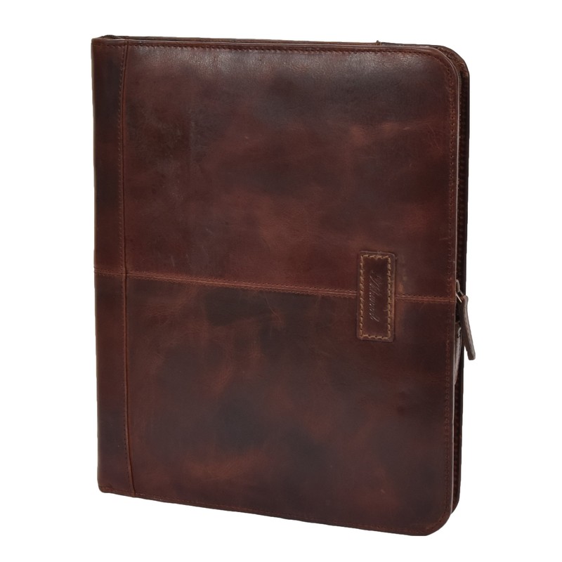 Leather Folio Case Portfolio Detachable Ring Binder Documents Holder Falkirk Brown