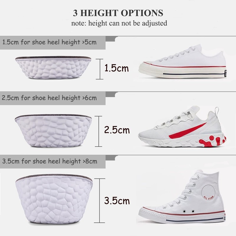 - Cut to fit, size adjustable shoe heel lift inserts.