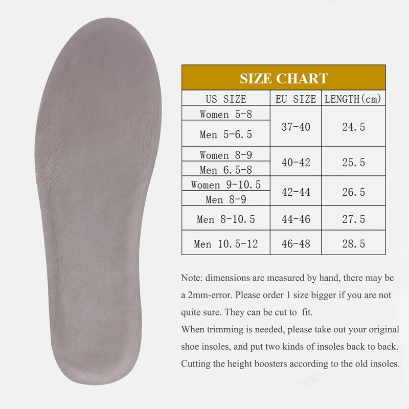 Leather Height Increase Insoles for Men Wowen Breathable Taller Cushion Shoes Insoles Heel Lift Inserts Elevator Insoles- Sweat & Shock Absorbing