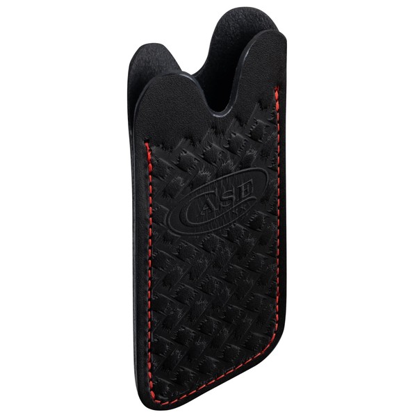Leather Knife Slip in Black with Herringbone Design and Red Stitching by Case