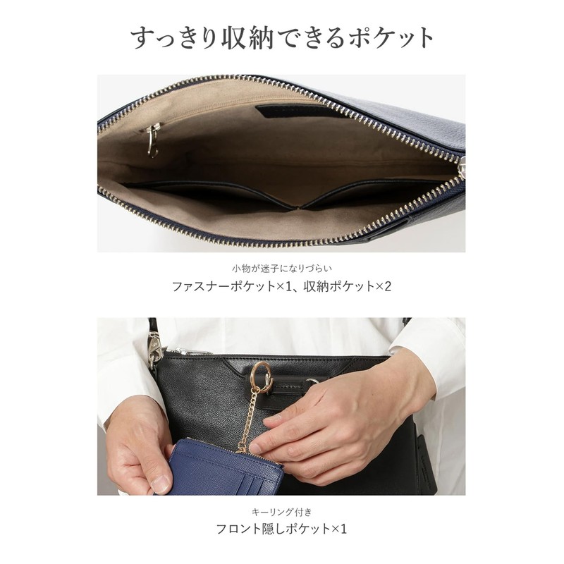 - (2-way specification) The strap can be used as a clutch bag if you remove it. Simple and sophisticated design: The simple design allows you to enjoy the texture of genuine leather, and it goes well with a wide range of outfits from casual to neat styles