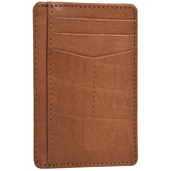 Leather Minimalist Wallet for Men & Women RFID Front Pocket Leather Card Holder Wallets (Dark Cognac, Small)