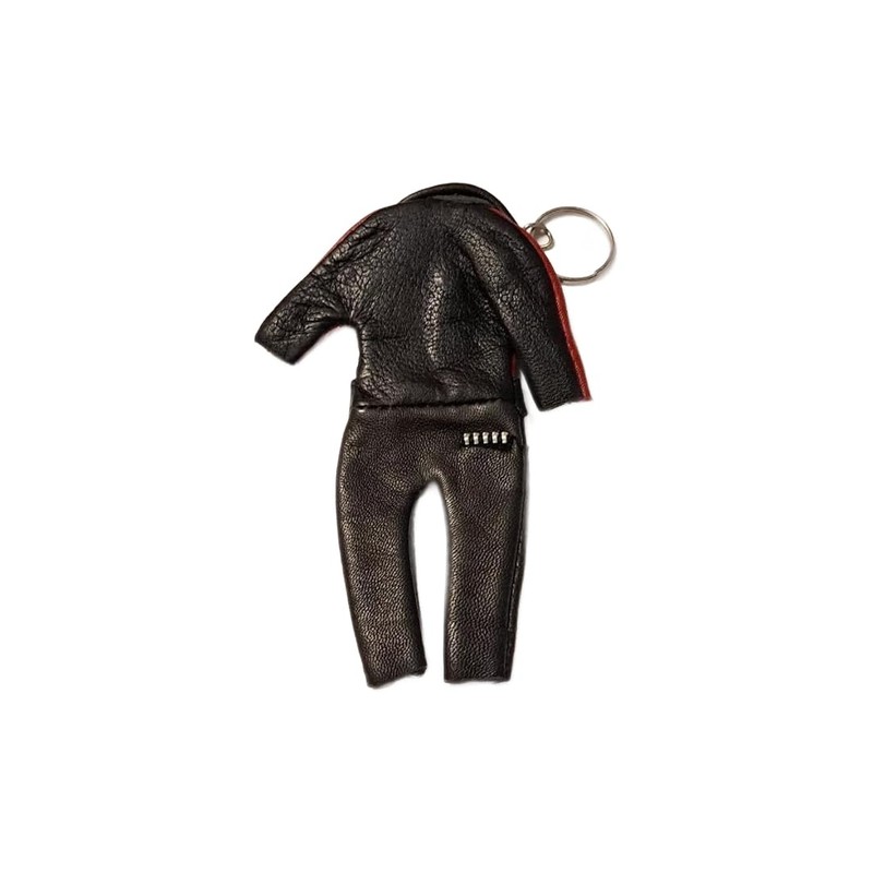 Leather Motorcycle Outfit Keychain, Red and Black, 5" x 3.5", Black, 5 Inches