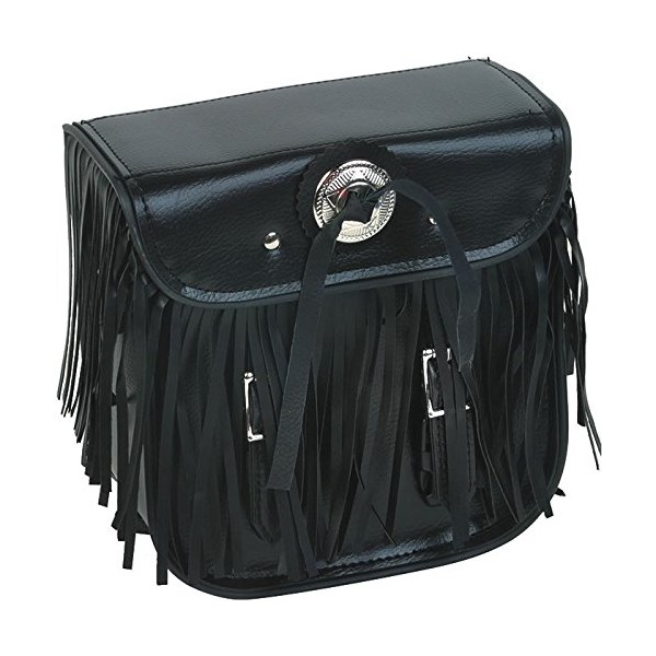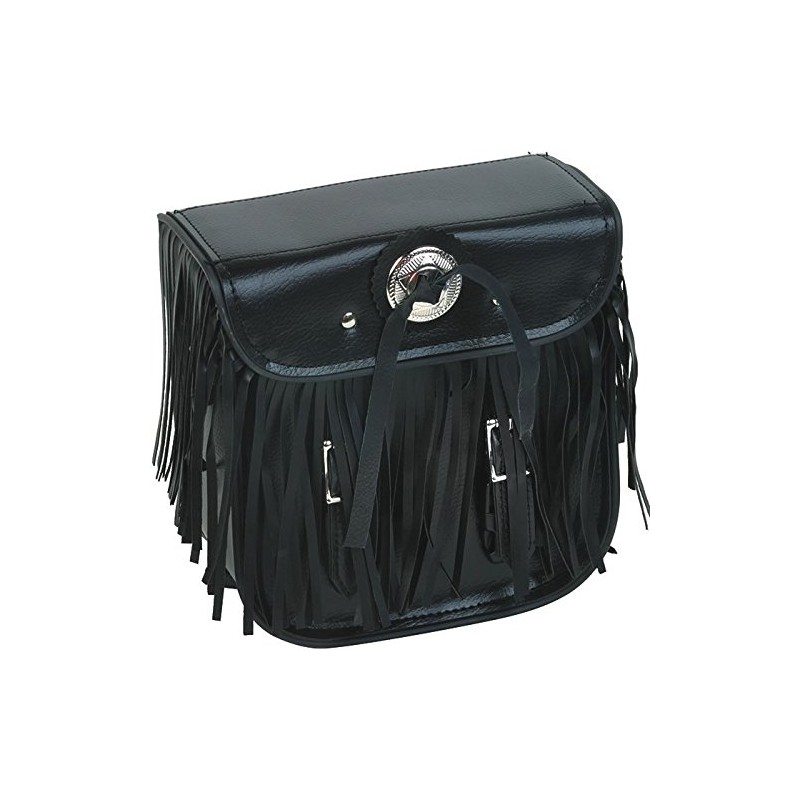 Leather Motorcycle Sissy Bar Bag with Braid, Fringes, and Concho