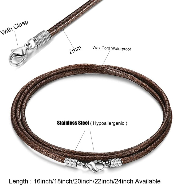 - 【 Leather Necklace Cord with Clasp 】 - The lobster clasp made of 316L stainless steel, hypoallergenic, nickel free, lead free, leather chain is waterproof, you can wear it all the time no matter shower or swimming, just no need to take it off