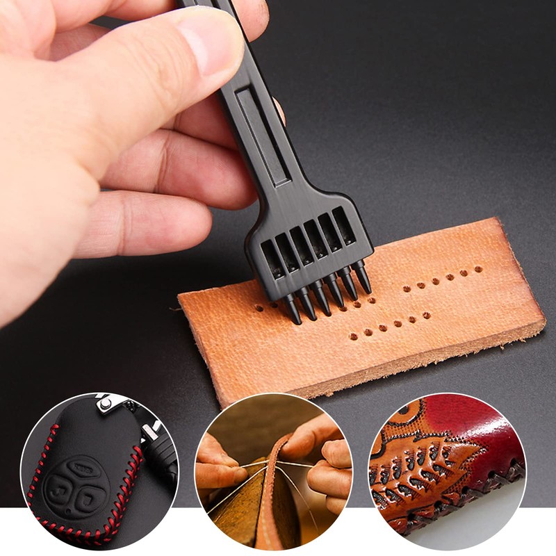 Leather Punching Tool 5mm/6mm 2/4/6 Prong Zinc Alloy Hole Punch Tool Lacing Stitching Chisel Set for DIY Leather Craft(6mm)