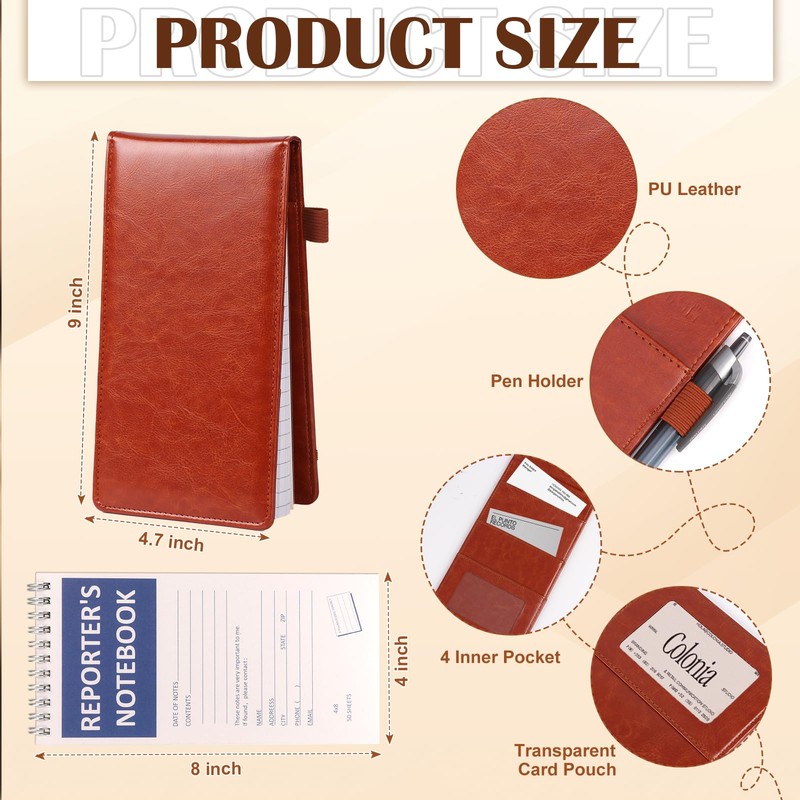 - 【Easy to Carry】The cover size of this reporters notebook cover is about 4.7x 9 inches, and the inner page size is about 4 x 8 inches. This size can be put into most handbags and backpacks , making it convenient for you to carry out and take notes at any time.After the top spiral notebook inner pages are used up, they can be replaced with new pages and reused repeatedly.