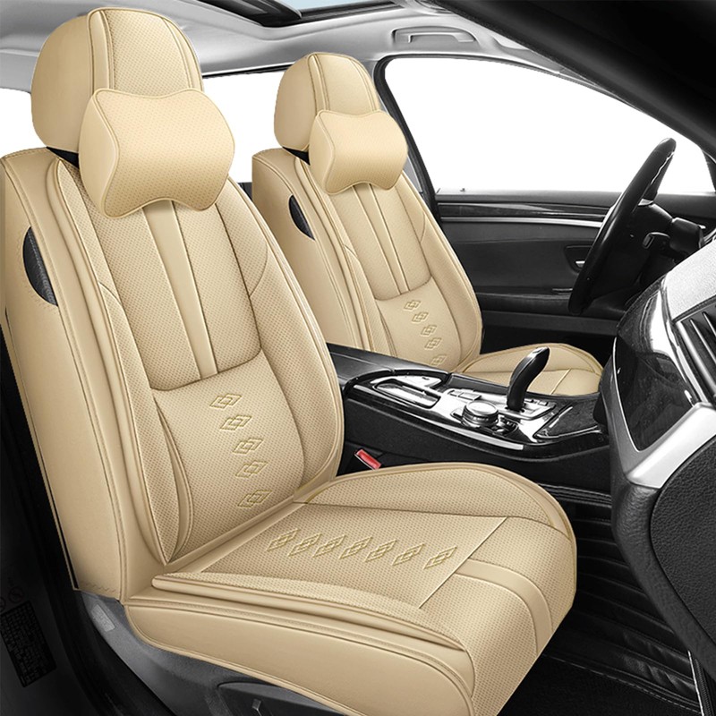 Leather Seat Covers for Mazda CX5 CX-5 2013-2025,Car Seat Covers Front Set,Waterproof Car Seat Protectors with Airbag,Comfort Interior Cover Seats for Cars(Beige,Pillows)