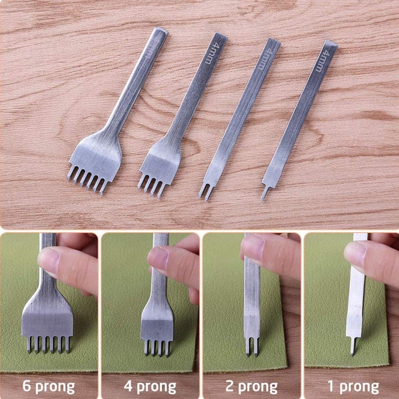 - Other tools: 1/2/4/6 prong leather chisel prong, scissors, thimble and needle bottle.