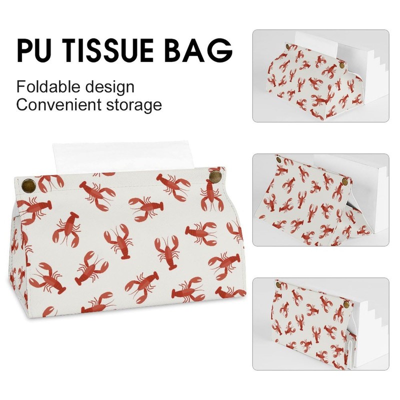 Leather Tissue Box, Rectangle Cover Case with Handle for Office Desk Car Home Bathroom Vanity 7.7x4.7x4.3 in Print Seamless Red Crawfishes Red Lobsters