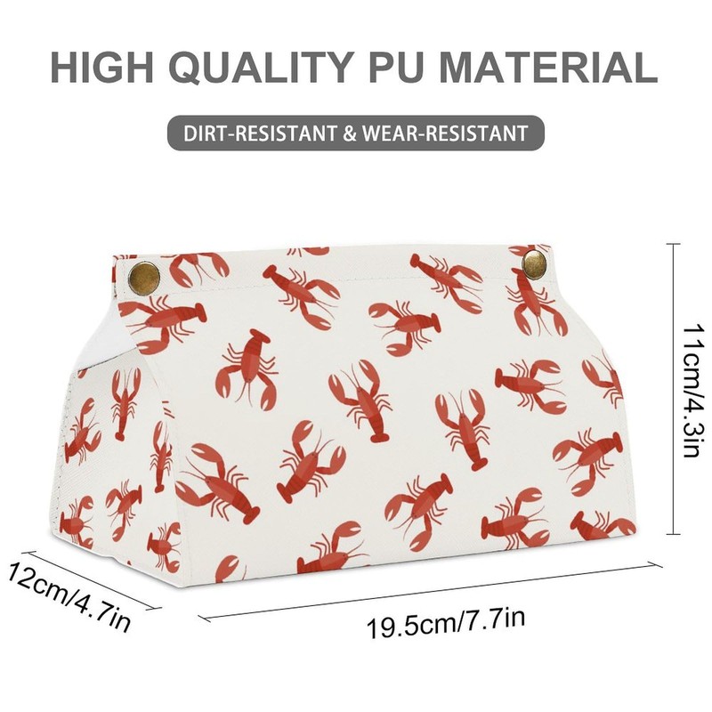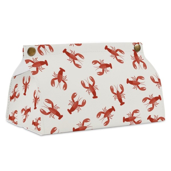 Leather Tissue Box, Rectangle Cover Case with Handle for Office Desk Car Home Bathroom Vanity 7.7x4.7x4.3 in Print Seamless Red Crawfishes Red Lobsters