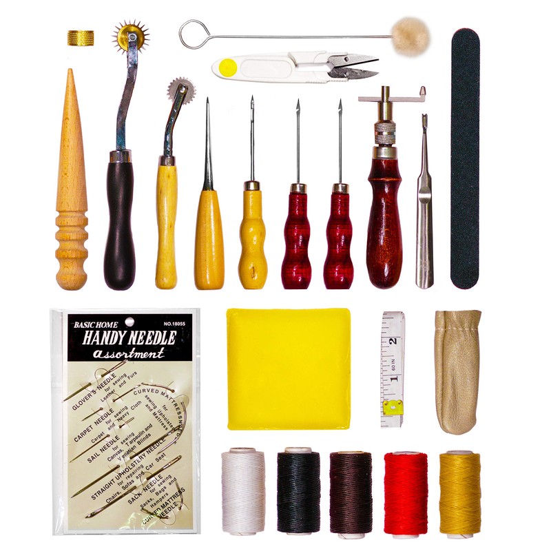 Leather Working and Upholstery Repair 28pcs Tool Kit, Including Sewing Needles, Awls, Files, Pressure Cloth Tools, Groover, and Much More