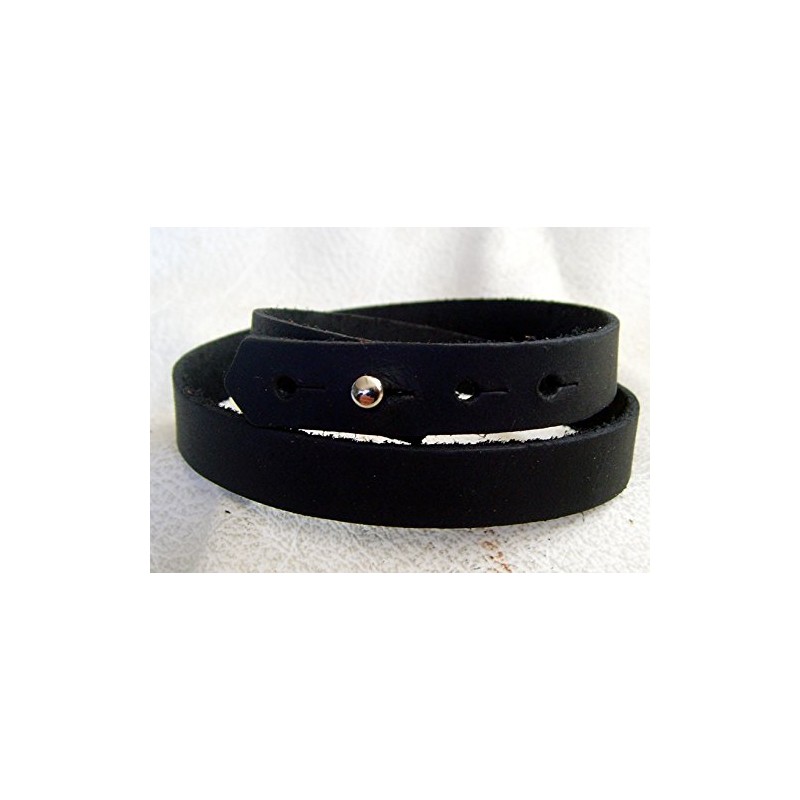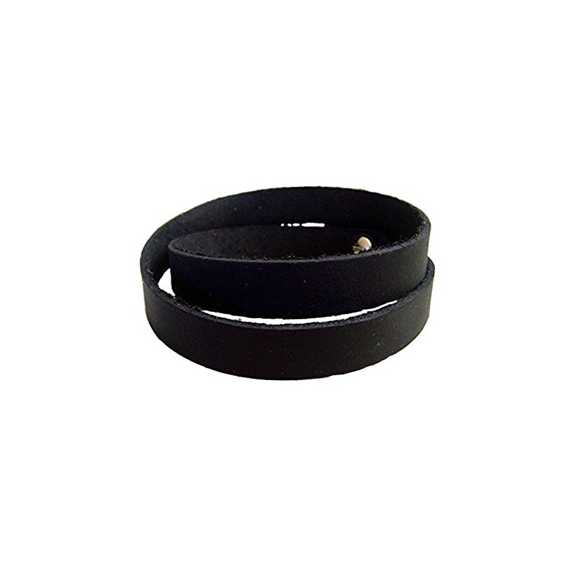 Leather Wrap Bracelet Genuine Leather Black Wristband Bracelet 15 mm