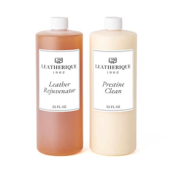 Leatherique Rejuvenator Oil & Prestine Clean Combo Pack Leather Conditioner - Cleans, Hydrates, Protects, Restore All Leather Types, Colors, & Ages - Non Sticky, & Non Silicone (32 Ounce)