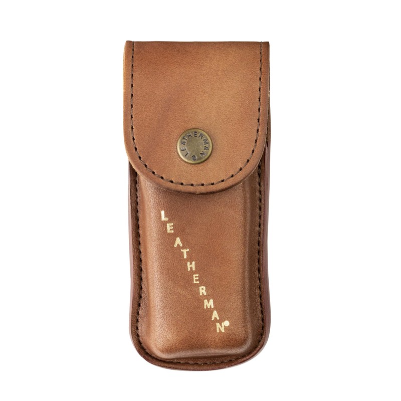 - The high-quality holster is made of durable, durable leather and has the Leatherman lettering on the front - the press stud closure ensures a secure closure