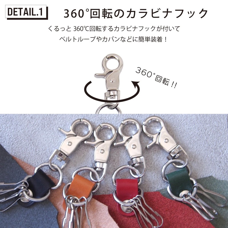 Leathertone 4LT0027 Tochigi Leather Key Case with Carabiner, Made in Japan, green