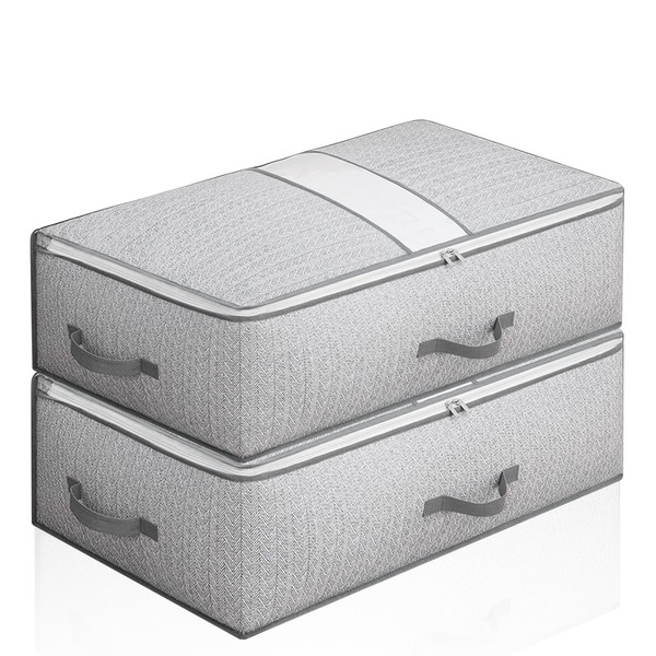 Leavans Underbed Storage Box with Lid, Foldable Clothes Storage Boxes for Clothes, Duvets and Bedding, Pack of 2, Grey