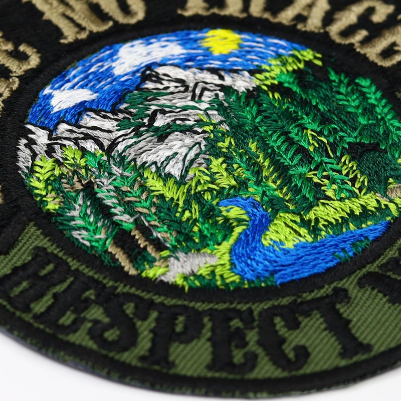 - Dimensions: dimensions including embroidered edge: 80 x 80 mm, design: leave no trace, respect nature