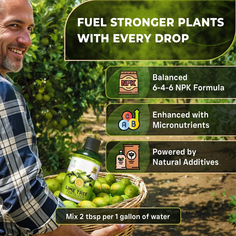 - BALANCED 6-4-6 FORMULA FOR LIME TREES: Our liquid fertilizer for lime trees provides essential nutrients in a scientifically balanced ratio to support healthy lime tree development. Encourages leafy growth, strong roots, and improved lime fruit production for all types of lime plants.
