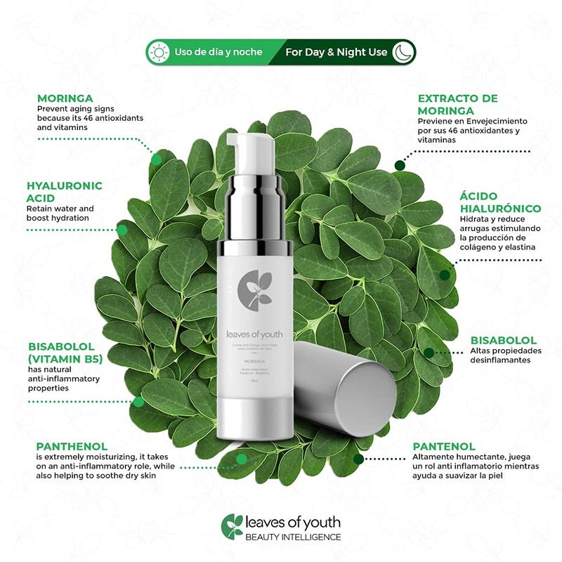 - Leaves of Youth Crema de Ojos: Ayuda a Mantener la Piel del Contorno de tus Ojos Desinflamada, Disminuyendo Arrugas, Ojeras, Bolsas y Líneas de Expresión, Tersa, Hidratada, Retardando la Aparición de Signos de Envejecimiento y Regenerando las Células de tu Piel
