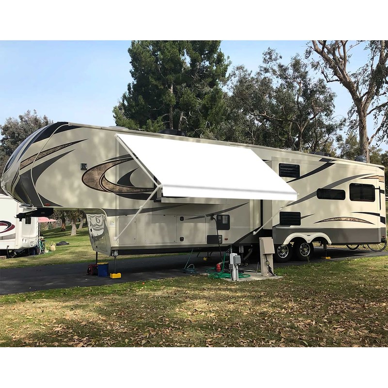 - White awning fabric replacement for your RV, offer you happier & distinctive camping but not only regular sun block and waterproof. Other custom graphical available to check with us