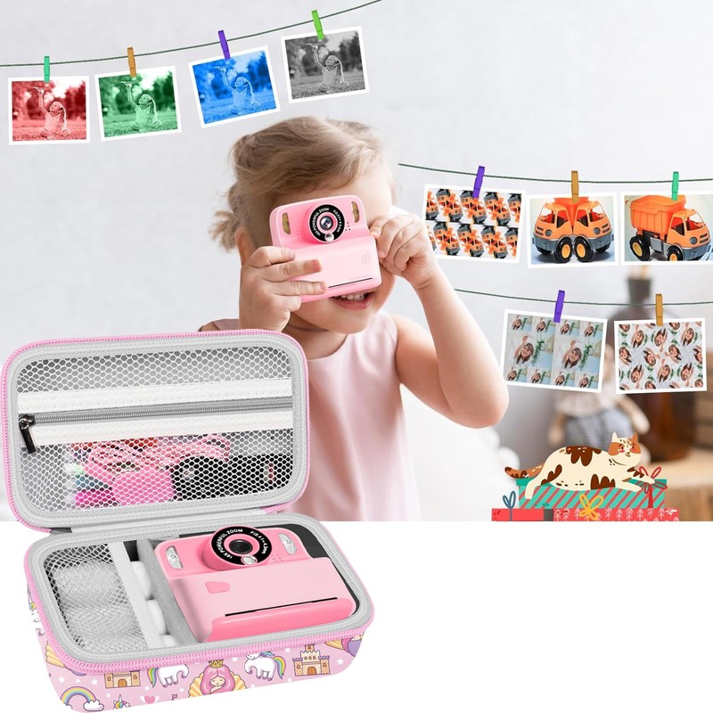 Leayjeen Kids Instant Print Camera Case Compatible with Amzelas/GGIE/CKATE/Gabrella/YKSLEMON and Kids Camera Print Paper, Birthday Gift Toys for Boys and Girls (Case Only) Pink Unicorn