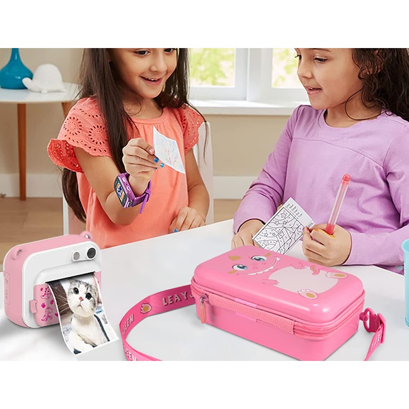 Leayjeen Kids Instant Print Camera Case Compatible with Hangrui/Gofunly/OPERHOO/YORKOO/HiMont/CHRERNA and Kids Camera Print Paper, for Boys and Girls Easter Toys Gift (case only) (Pink)