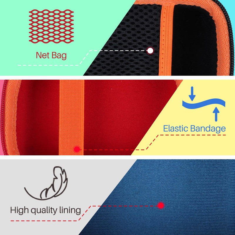 - The lower cover of this protective case features an elastic band that holds the device firmly in place, minimizing the risk of damage caused by friction during transport. The top cover has a mesh pocket, perfect for storing charger cables and other small accessories, ensuring all necessary items are kept together. The case also comes with a unique orange side strap and a firm, smooth zipper that is both stylish and strong, allowing the case to close securely.