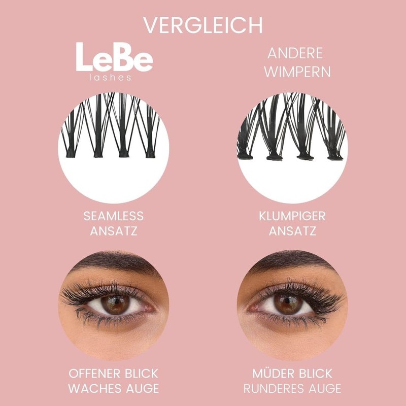 - Makes eyes shine – LeBe lashes support the natural shape of the eyes. The eye looks fresh and awake, open and stretched