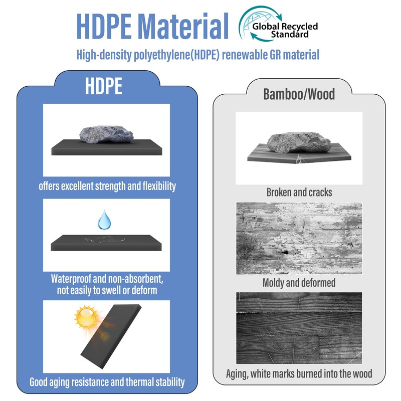 - HDPE material characteristic: LEBENGURU washing machine topper is made of HDPE material, which has low water absorption relative to wood and is not easy to mold and swell. This material also has high rigidity and toughness which is not easy to deform, and we use drop-resistant packaging to minimize product damage during transportation. HDPE laundry topper is heat-resistant, waterproof and easy to clean, making it a reliable choice for laundry rooms