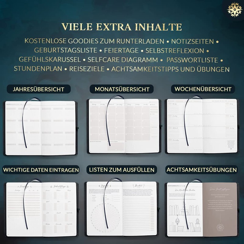 • Personal development: The calendar combines everyday structure with topics such as mindfulness, self-reflection and personal development.