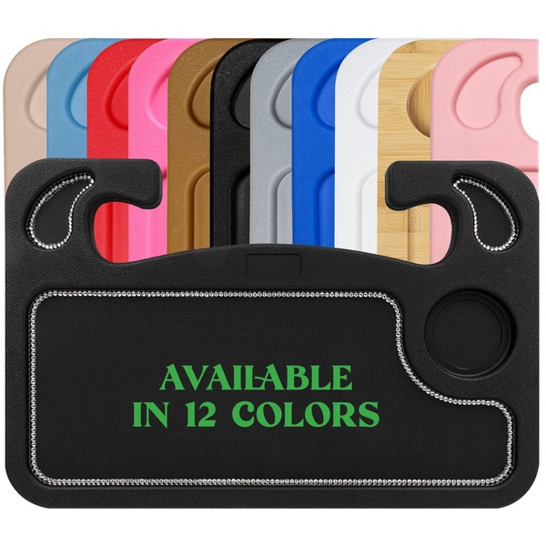lebogner Steering Wheel Tray, Car Tray for Eating, Hook On Steering Wheel Desk for Food, Laptop and Car Accessories, Car Road Trip Must Haves Gadgets Car Table (Black with Rhinestones)