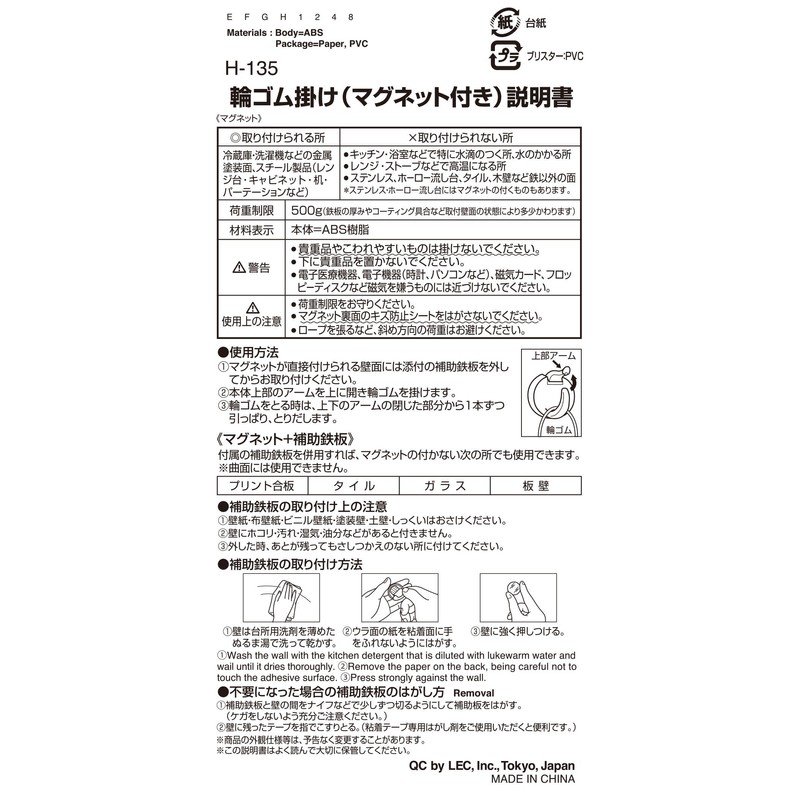 レック(LEC) 輪ゴム掛け マグネット付き 4.5x4.5x3.5cm H-135 ホワイト
