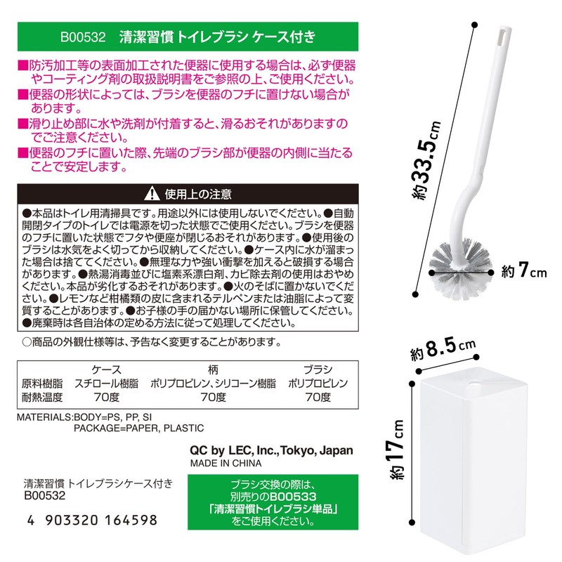LEC Cleanliness Habits Toilet Brush with Case / Place on the Edge to Drain / Wash the Border Back Without Worrying About Direction
