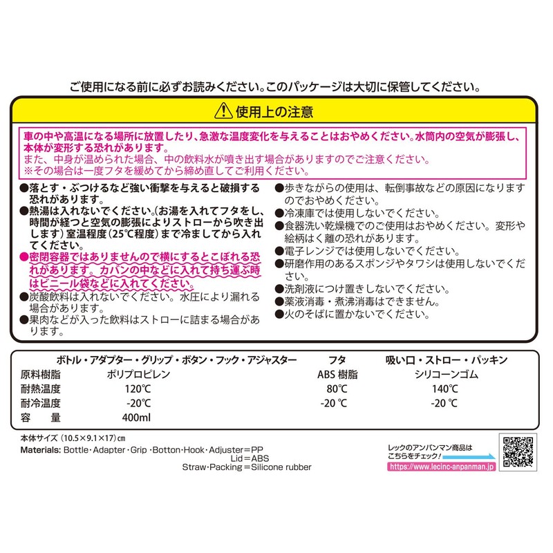 - Have an outing with Anpanman.Your child will love this cute water bottle