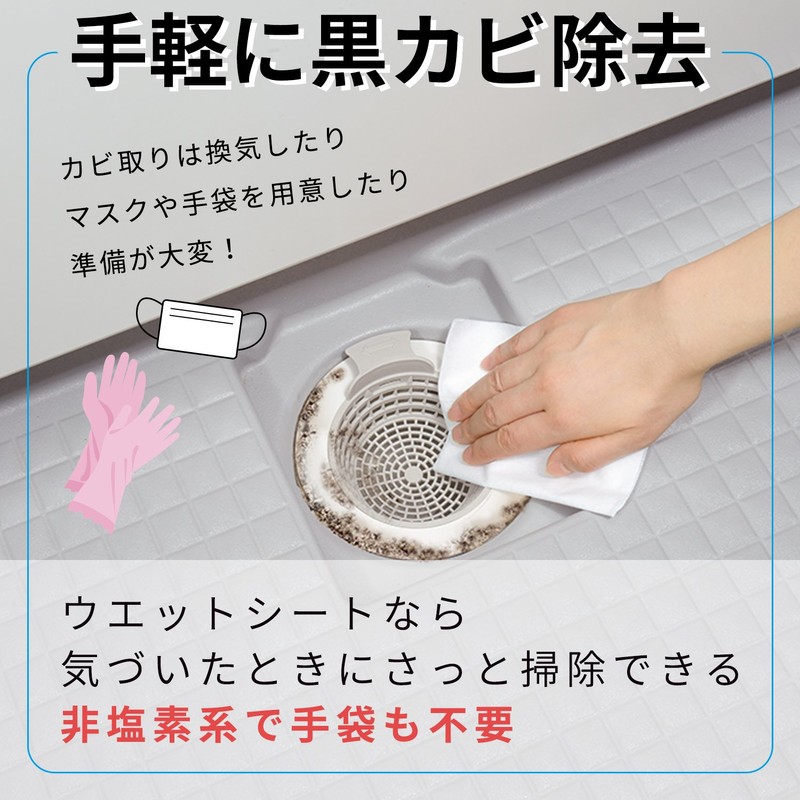 LEC S00042 Gekiochi Kurokabi-kun Bathroom Mold Remover, Wet Sheet (Hypoallergenic, Non-Chlorine Mold Remover), 10 Sheets