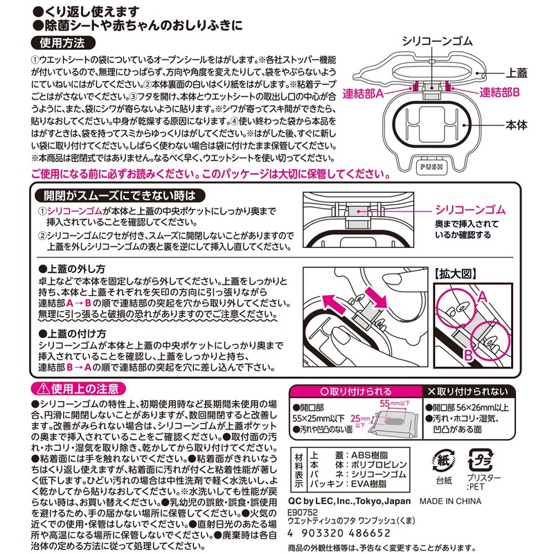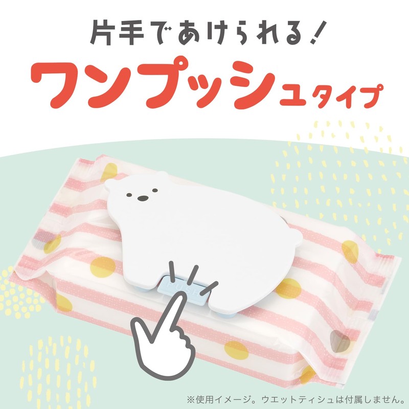 Lec Wet Tissue Lid, One Push (Bear), White/Antibacterial Treatment, Includes a Non-Dry Seal, Easy to Remove One Piece at a Time
