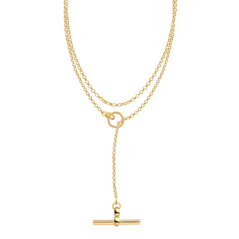 LeCalla 925 Sterling Silver Gold Ring T-Bar Necklace for Women | 14K Gold-Plated Open Circle & Bar Necklace with Rolo Chain | Minimalist Y Necklace 32 Inches