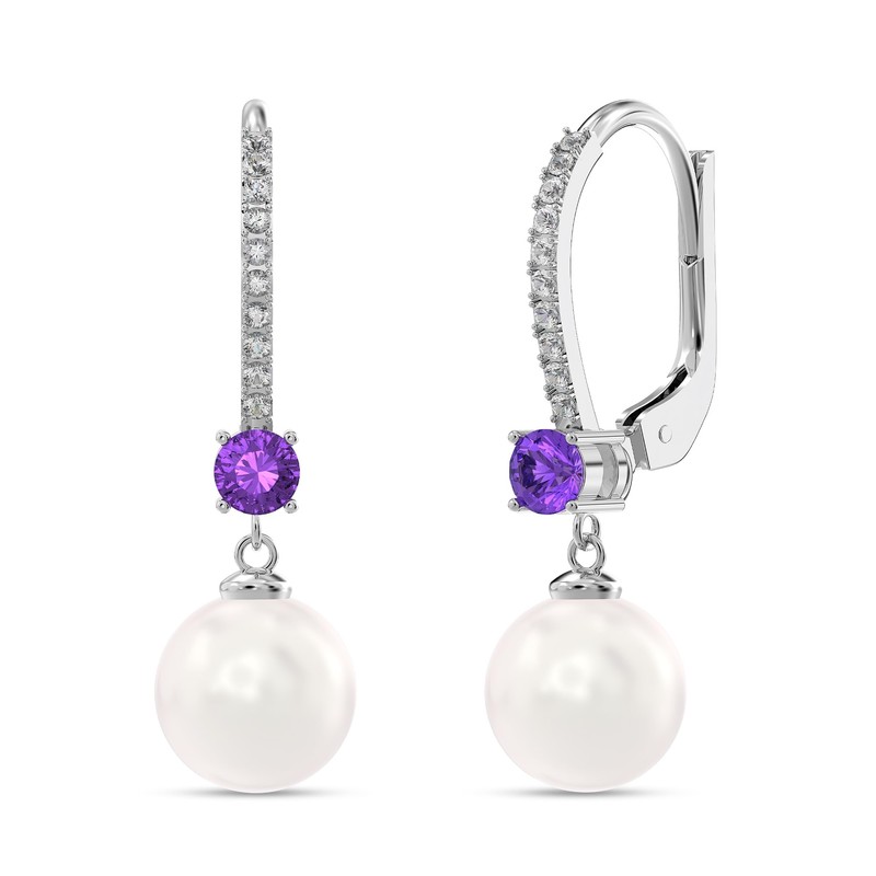 - FEATURE DIMENSIONS: These Sterling Silver Light-Weight Cute Modern Style Jewelry Round cz pearl Amethyst Birthstone Hypoallergenic Dangle Earring measures : 32 MM by 8 MM / 1.25 Inches by 0.31 Inches, with Leverback Closure which is very easy to clip on and off.