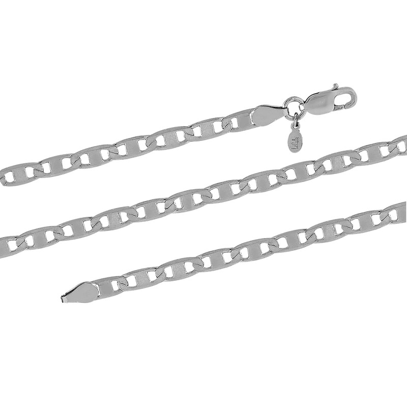 LeCalla 925 Sterling Silver Rhodium Plated 4 MM Italian Diamond-Cut Solid Flat Mariner Link Chain Necklace for Teen and Women 16 Inches