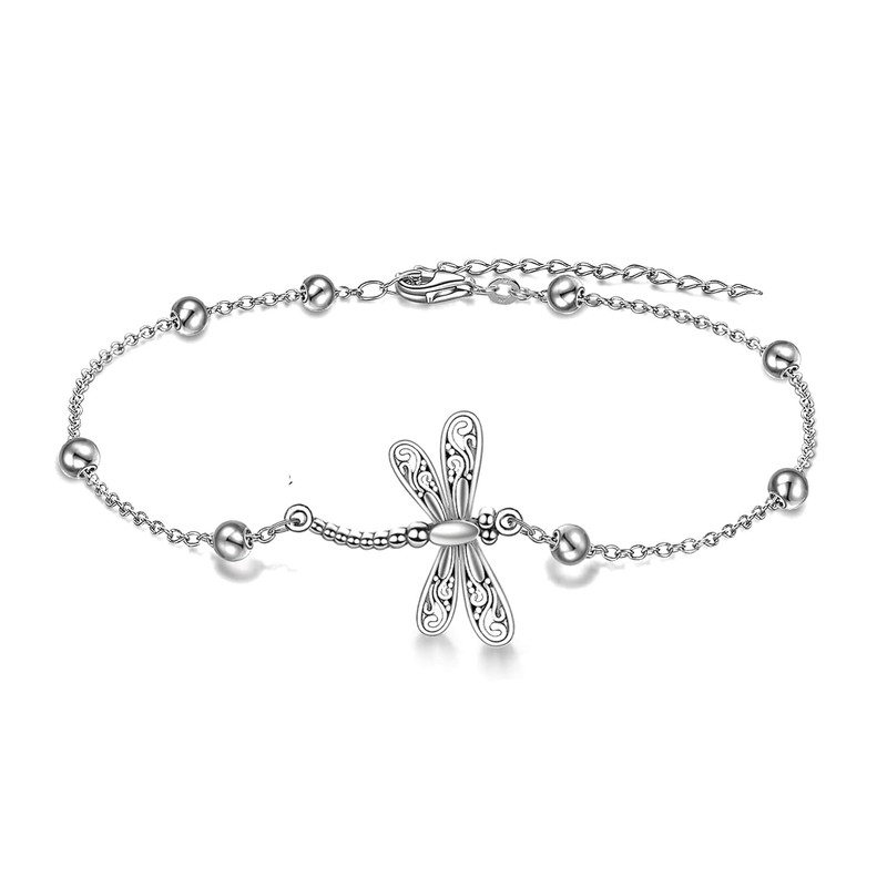 LeCalla Silver Anklets for Women | 925 Sterling Silver Adjustable Dragonfly Beads Anklet | Beaded Station Chain Ankle Bracelet Jewelry Gift for Mom Wife Sister Friend 11 Inches