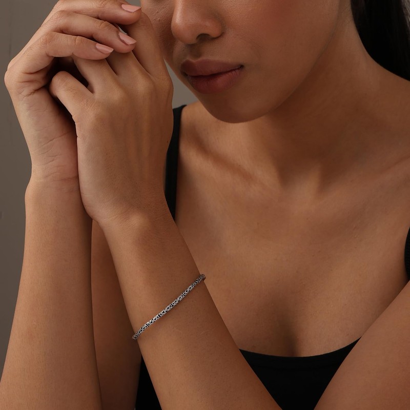 LeCalla Solid 925 Sterling Silver Byzantine Bracelet for Women | Italian 2.5MM Round Handmade Antique Byzantine Link Chain Bracelet 7 Inches, Made in Italy