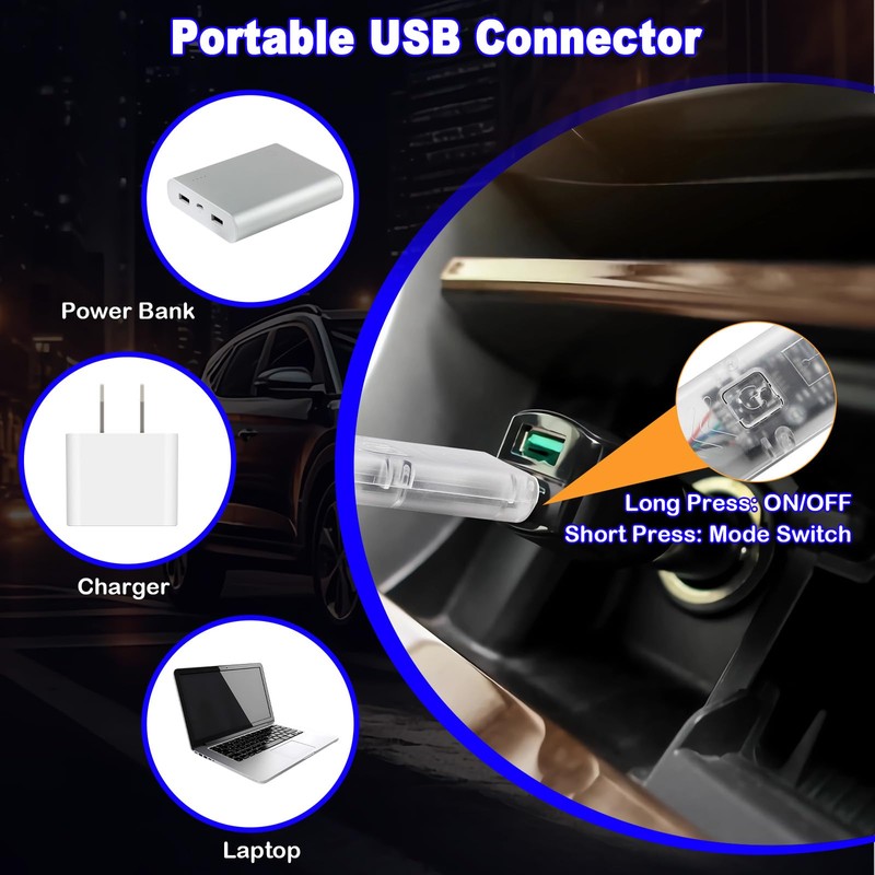 - Plug Play USB Connector: This cool led car eyes light comes with a USB port connected wire. You don't need any batteries. Just plug it directly into any USB port. It's highly energy-saving