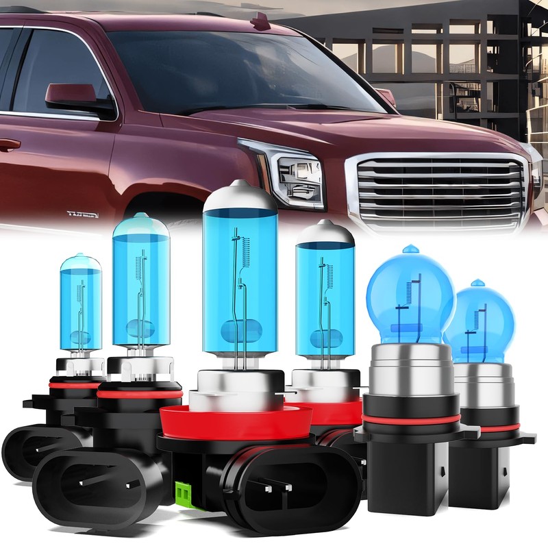 • 【Compatible with GMC Yukon Headlight Bulbs】LECCIBUB Halogen headlights are perfectly compatible with GMC Yukon 2015 2016 2017 2018.Reduce the risk of error warnings,radio static or flickering.You don't require additional encoders.The Halogen headlights combo includes 2pcs 9005/H10/HB3 high beam,2pcs H11/H8/H9 low beam and 2pcs PSX26W fog lights,totaling 6 Halogen bulbs in the package.