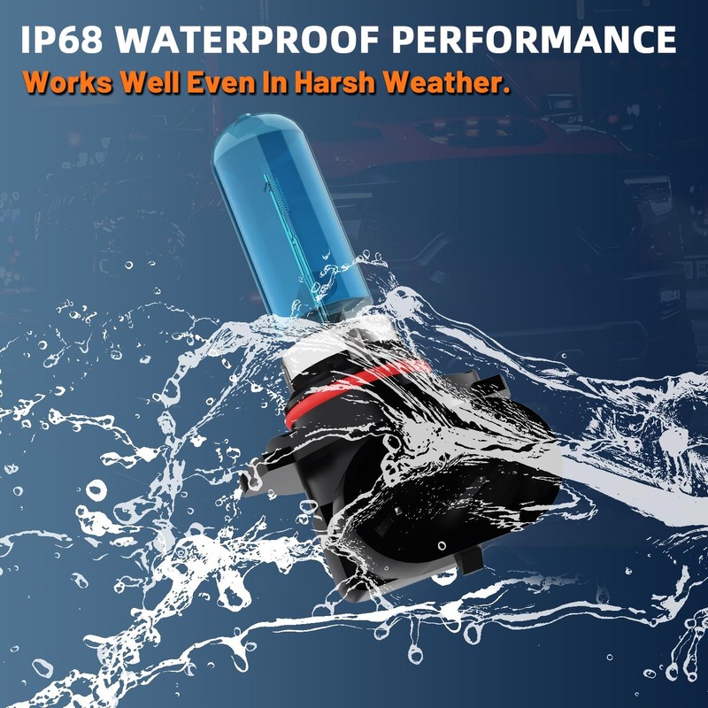- 【Over 30,000 Hours Lifespan】The 9005 high beam halogen bulb is filhalogen with Xenon gas,which helps helps to slow down the process of oxidizing the tungsten inside.9005 Halogen bulbs lifespan can reach more than 30,000 hours.With IP68 waterproof dustproof design,our hi/low beam Halogen bulb don't burn out or become damaged even in extreme weather,like fog/rain/overcast etc.