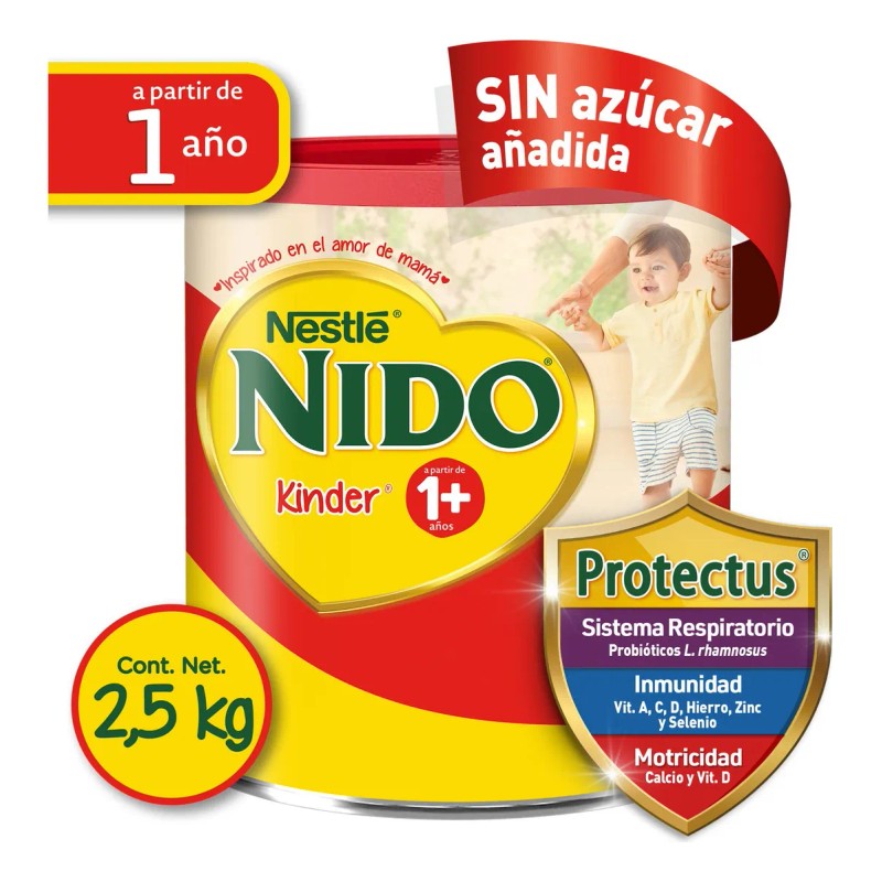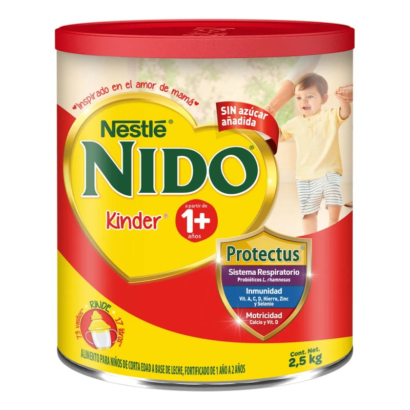 Leche de fórmula en polvo sin TACC Nestlé Nido Kinder en lata de 2.5kg - 1 año +
