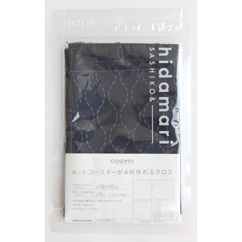 LECIEN 98902 Sashiko Coaster Can Make 4 Piece Cross, Navy Blue