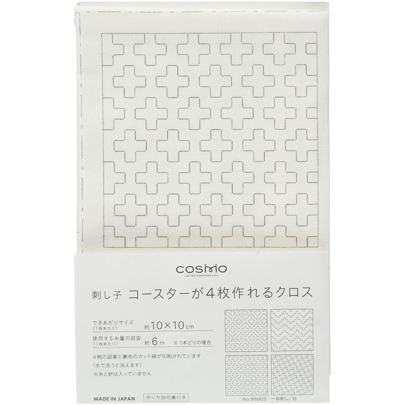 LECIEN 98903 Sashiko Coaster Cross, Made of 4 Pieces, White