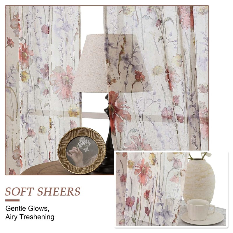 - Unique Crushed Texture: The unique crushed craft work and crinkled texture design, and when paired with the printed floral patterns, it creates a vibrant and lively atmosphere for your room. The clear prints are applied to the sheer curtains, infusing them with the captivating charm of watercolor paintings and offering you a double dose of rustic and aesthetic pleasure.