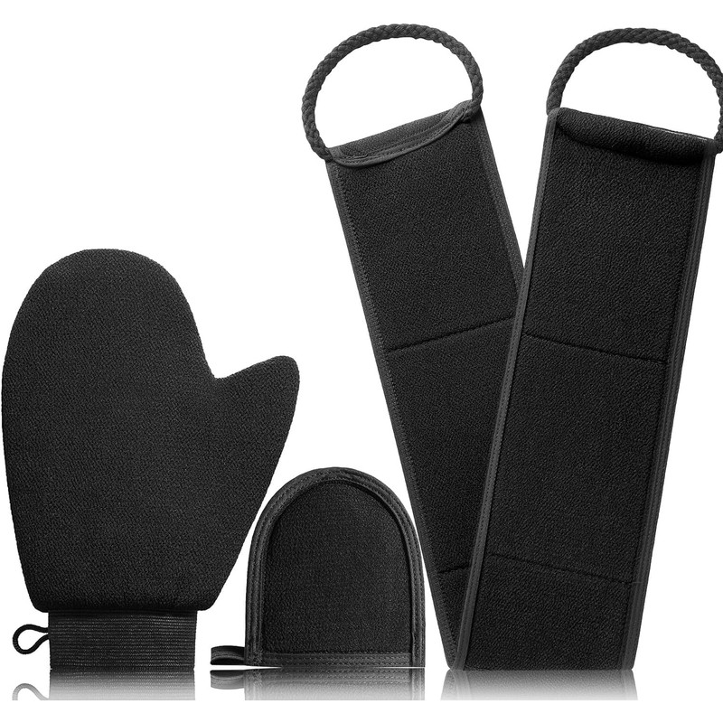 - โจNO NEED ASK HELP 3 IN 1 At Home Exfoliating Set --- Include 1pc thumb-exfoliating glove, 1x face scrubber, and 1x back scrubber for shower. The two-handled back exfoliator and longer length (4" x 27") make it easy to scrub all hard-to-reach areas. The exfoliating mitt set gives you more control to scrub your entire body. Choose this professional exfoliating body scrubber set, you totally can finish exfoliation at home by yourselves and enjoy a relaxing SPA, no need to ask for help from others!